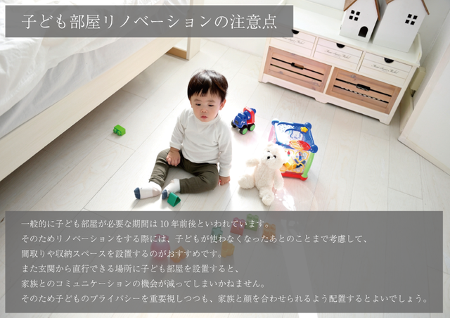 そのためリノベーションをする際には、子どもが使わなくなったあとのことまで考慮して、間取りや収納スペースを設置するのがおすすめです。