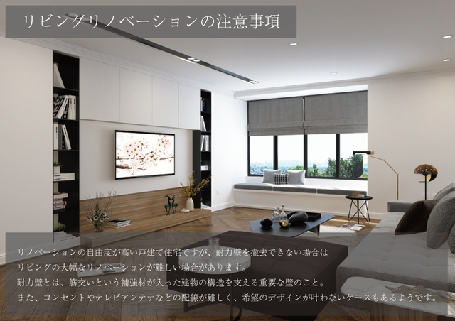 リノベーションの自由度が高い戸建て住宅ですが、耐力壁を撤去できない場合はリビングの大幅なリノベーションが難しい場合があります。