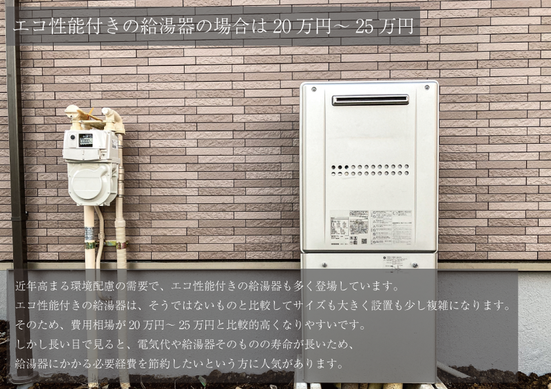 ・エコ性能付きの給湯器の場合は20万円〜25万円