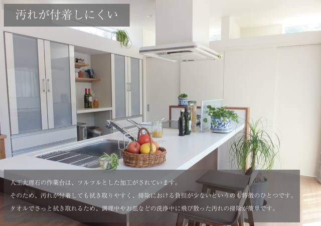 人工大理石の作業台は、ツルツルとした加工がされています。