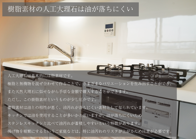 ・樹脂素材の人工大理石は油が落ちにくい