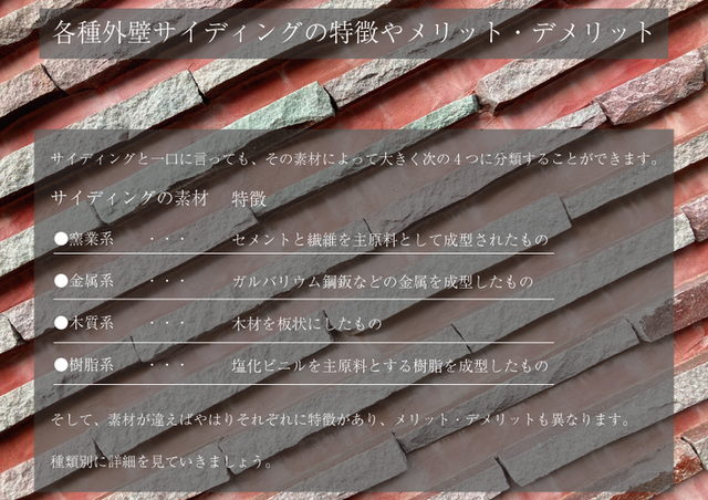 【各種サイディングの特徴やメリット・デメリット】