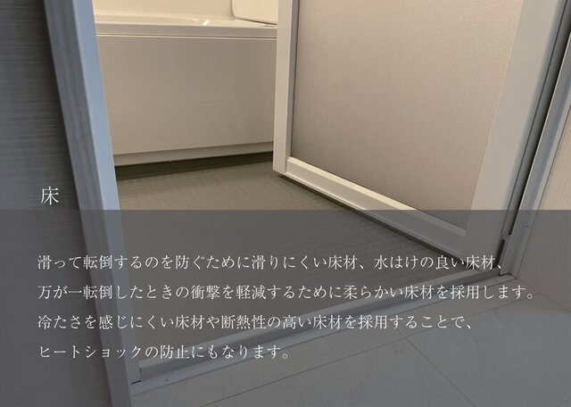 冷たさを感じにくい床材や断熱性の高い床材を採用することで、ヒートショックの防止にもなります。