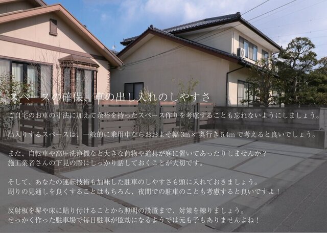 せっかく作った駐車場で毎日駐車が億劫になるようでは元も子もありませんよね!