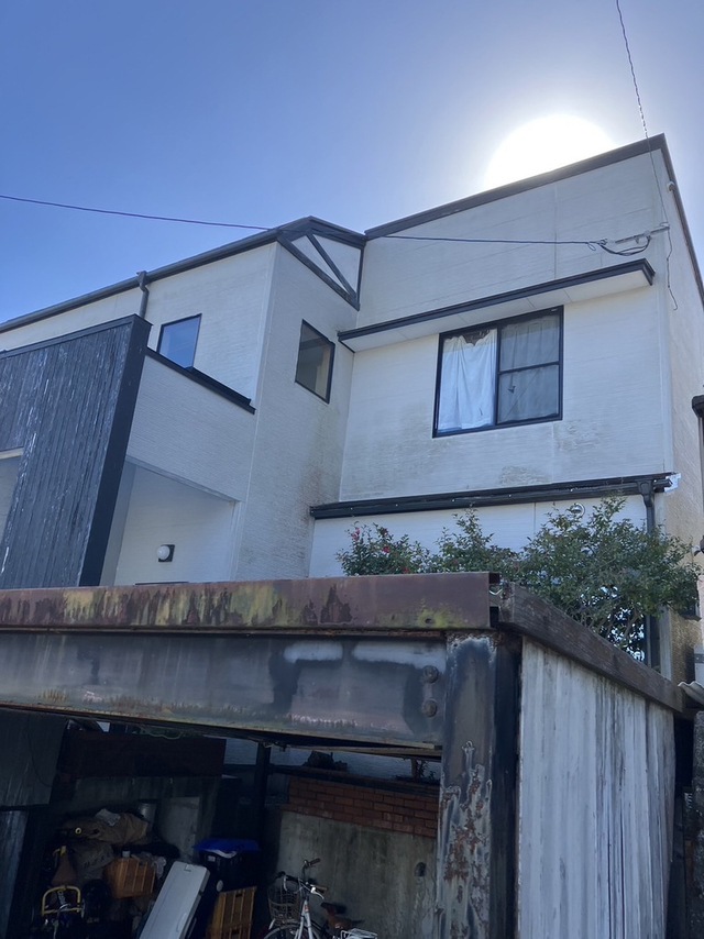 木部も腐食しており部分貼り替えを行なってから綺麗に塗装で仕上げました。外壁・屋根も見違えるほど綺麗になり大きなお家がより映えるようになりました♪