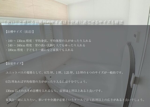 【「狭い」と感じるお風呂のサイズは?快適に過ごせるサイズも確認】