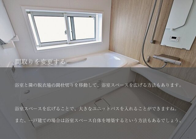 また、一戸建ての場合は浴室スペース自体を増築するという方法もあるでしょう。