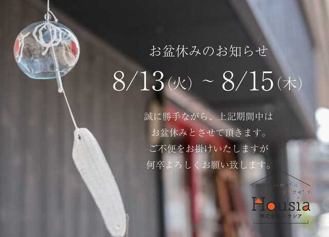 夏季休業期間:8月13日(火)~ 8月15日(木)