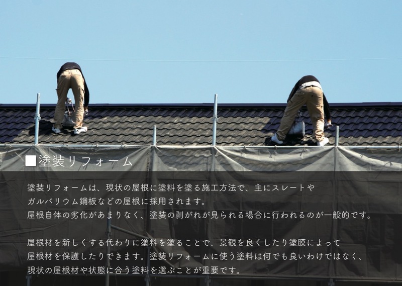 屋根自体の劣化があまりなく、塗装の剥がれが見られる場合に行われるのが一般的です。