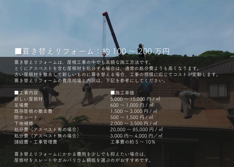 葺き替えリフォームの費用相場と内訳は、上記画像を参考にしてください。