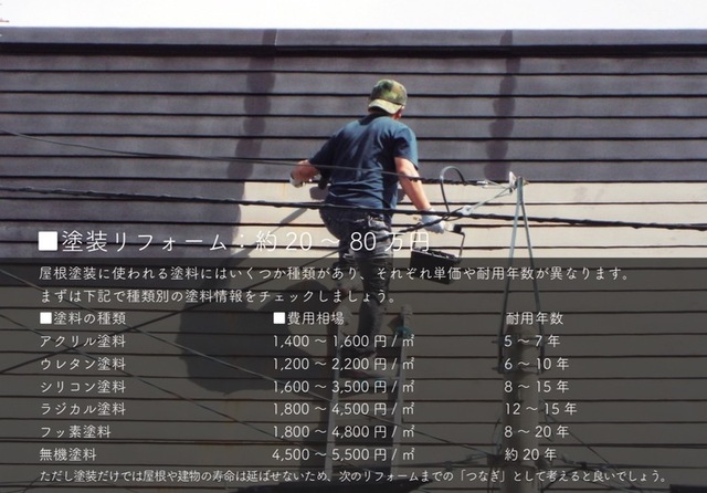 ただし塗装だけでは屋根や建物の寿命は延ばせないため、次のリフォームまでの「つなぎ」として考えると良いでしょう。