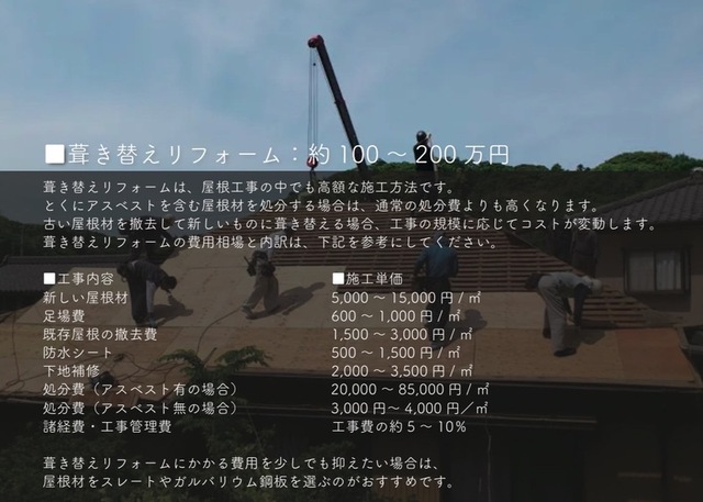 ▪️葺き替えリフォーム:約100~200万円