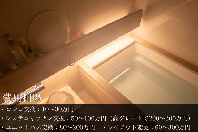 ・システムキッチン交換:50〜100万円(高グレードで200〜300万円)