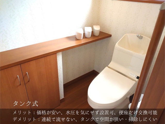 • デメリット:連続で流せない、タンクで空間が狭い・掃除しにくい