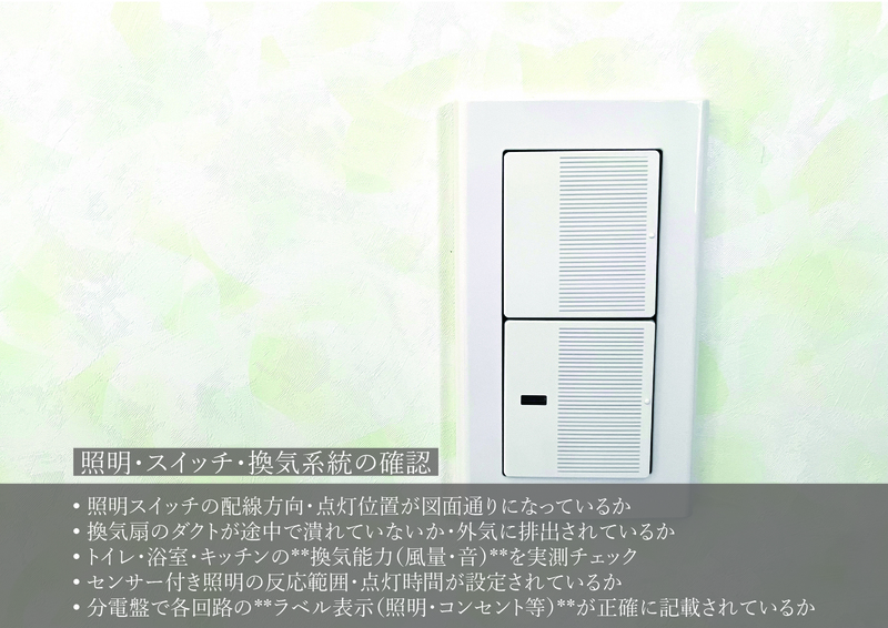 ② 照明・スイッチ・換気系統の確認