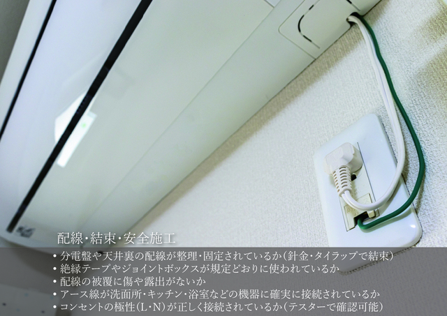 • 分電盤で各回路の**ラベル表示(照明・コンセント等)**が正確に記載されているか