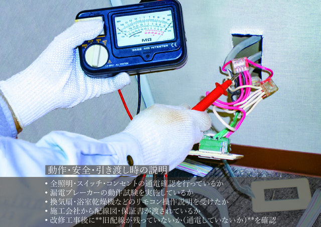 • 改修工事後に**旧配線が残っていないか(通電していないか)**を確認