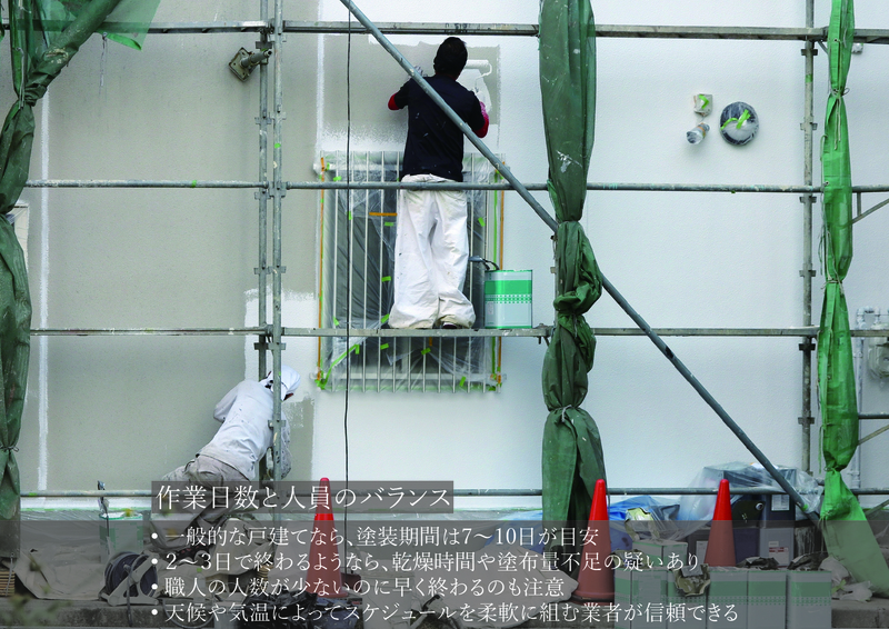• 職人の人数が少ないのに早く終わるのも注意