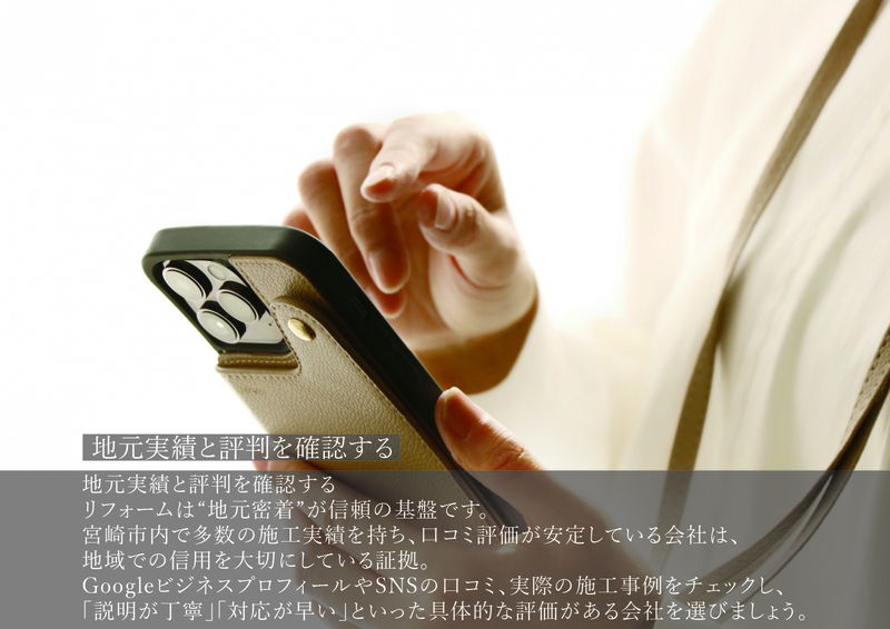 宮崎市内で多数の施工実績を持ち、口コミ評価が安定している会社は、地域での信用を大切にしている証拠。