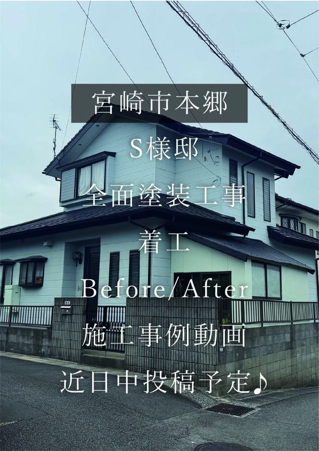 宮崎市 本郷 S様邸全面塗装工事着工しました♪今回の工事内容は屋根・外壁全面塗装工事です。完工後のBefore ▶︎ after動画お楽しみに♪