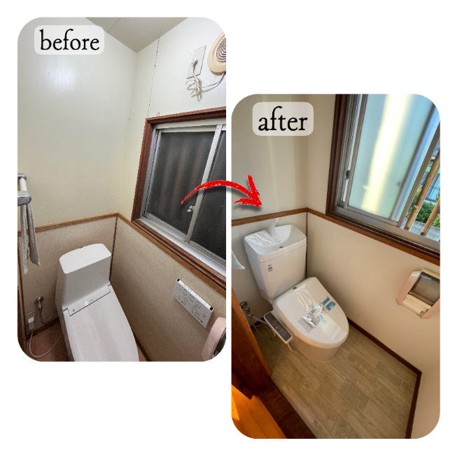 トイレ改修工事 施行事例 Before&after・工期 1週間〜2週間・施工場所 宮崎市大字熊野・使用した商品 LIXIL「プレアスLS」・お客様の声 トイレのリフォームを考えていた所弊社のチラシがポストに入っていたのをご覧になってお問い合わせいただきました。手洗い器と一体型のトイレで楽になったと言っていただきました。ありがとうございました。beforeafter今回は以上です。お問い合わせやご質問はお気軽にご連絡下さい♪株式会社ハウシアリペイントハウス宮崎〒880-0857 宮崎県宮崎市小戸町112様々な施工事例動画をインスタでご紹介中↓https://www.instagram.com/sun.shine_housia/reels/YouTube チャンネル開設しました、随時更新しますのでご覧ください♪スタッフ紹介配信中 www.youtube.com/@HousiaMIYAZAKI#宮崎リフォーム #宮崎外壁塗装 #宮崎屋根塗装 #宮崎シロアリ #宮崎害虫駆除 #シロアリ対策 #家を守る#お家メンテナンス #地域密着リフォーム #宮崎の工務店