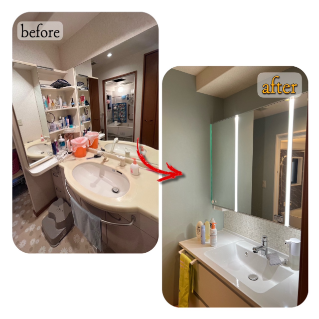 洗面化粧台改修工事 施工事例 before&after