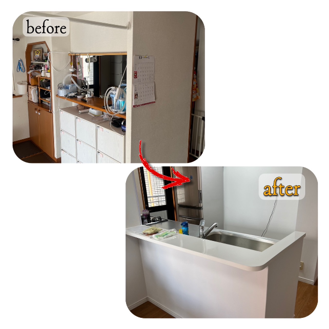 キッチン横の壁を撤去し、見た目もスッキリで見渡しもよくなりお子様なども目が届くので安心できるようになりました。ありがとうございました。