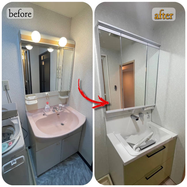 洗面化粧台改修工事 施工事例 before&after