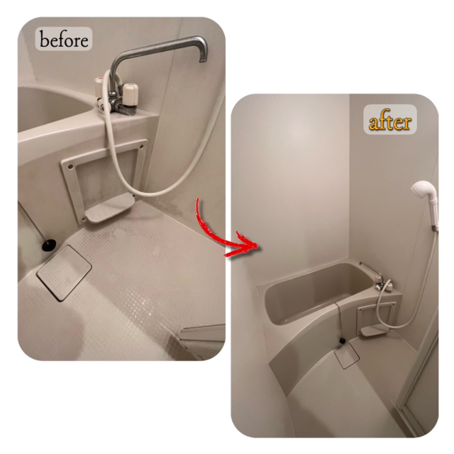 床も以前のワックスが剥がれてきておりかなり目立っていました。クロスは全面貼り替え、浴室も綺麗にクリーニングしました。