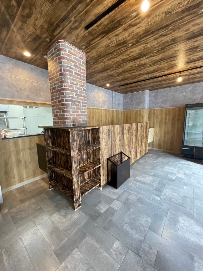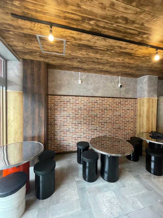 元はカフェの店舗を改修のご依頼いただきました。店舗内のクロスや床材、外壁など選んでいただき本当に韓国に来たかのような雰囲気のお店に仕上がりました。