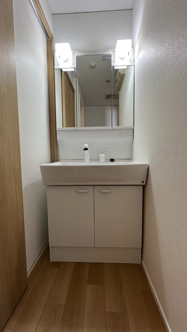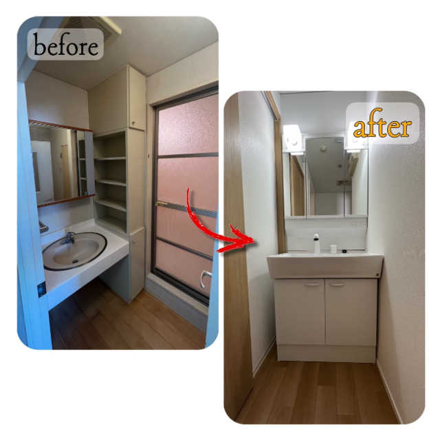 ・使用した商品 Housetec「QVシリーズ」・お客様の声 使い勝手の問題で元の洗面化粧台の位置と洗濯パンの位置を入れ替えて施工しました。鏡裏の収納などもあり使いやすいとご満足いただきました。