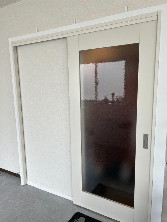 宙吊りになっているような状態でリヴェルノに交換でおしゃれで落ち着いた雰囲気の建具になりました。ありがとうございました。