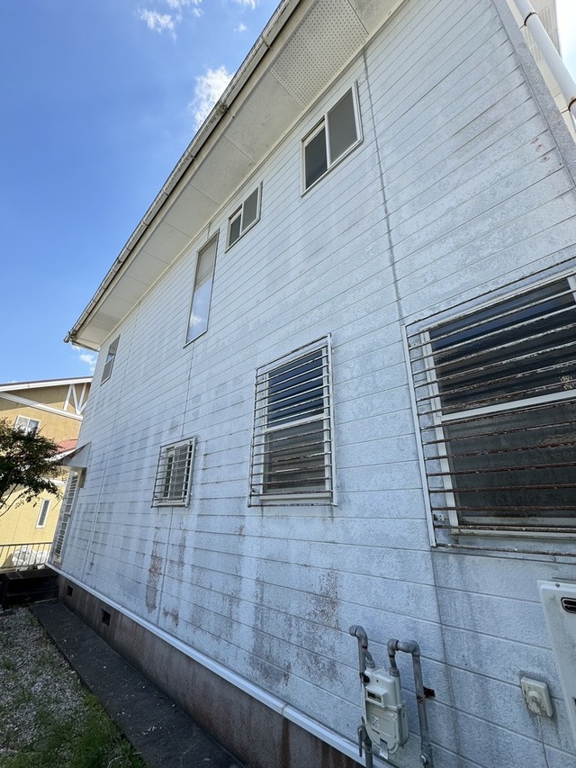 購入したご自宅の外壁塗装・カーポート改修のご依頼で、経年劣化によるチョーキングやカーポート屋根の破損がありました。